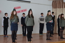 В школе прошел фестиваль "Солдатской песни" среди 1-11 классов. Жюри конкурса, состоявшее из учитель музыки Гафиятовой Л.И., заместителя директора по УВР Антохиной Н.А.. и заместителя директора по ВР Прохоровой Т. В., оценивало выступление конкурсантов по трем возрастным категориям: начальная школа, среднее звено, старшее звено. В1 возрастной категории победили 4 "А" - 1 место, 4"Б" - 2 место, 2 класс- 3 место; вторая возрастная категория - 6 "б" - 1 место, 5 "Б" - 2 место, 6 "А" 3 место; в третьей возрастной гатегории - 9 "А" - 1 место, 10 класс- 2 место, 9 "Б" - 3 место. Молодцы!