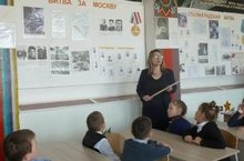 Сенодня учащиеся 1-х классов пришли на экскурсию в комнату Боевой славы. О Дне Победы, о вкладе земляков, об отряде "Ориент" детям рассказала учитель истории Пахомова С. С.