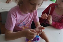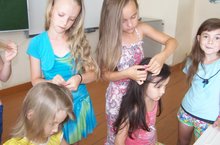 Сегодня в лагере "Мадагаскар" - "День творчества". В программе дня: конкурс рисунков на асфальте "Как прекрасен этот мир", отрядное мероприятие "Мастер на все руки".