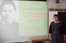 6- 7 нче сыйныф укучылары белән “Бар җиһанга күренерлек кадерле Тукаебыз” исемле уен-ярыш үткәрелде. Бу уен-ярышның максаты- балаларның Тукай турындагы белемнәрен тикшерү, татар теленә, Тукай иҗатына хөрмәт һәм мәхәббәт тәрбияләү иде. Ярыш ике команда арасында барды. Командаларның исемнәре дә бик матур яңгырады. I команда “Без Тукай шәкертләре”, ә II команда “Кояш” исемен яклады. Уен- ярышның беренче өлешендә Г.Тукай турында кем күп белә?( Тукай турында истәлекләр тыңлау), икенче өлешендә “Тукай әкиятче”( әкият исемнәрен атау), өченче өлешендә “Тукай һәм җыр” ( җырның исемен атау) , дүртенче өлешендә “Аукцион”( мин шигырьне ничә юлдан беләм) тест-сорауларга җавап бирү булды. Чара бик эчтәлекле үтте.
