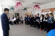 В рамках проведения месячника военно-патриотического воспитания и недели истории и обществознания, сегодня в школе прошел традиционный конкурс "Смотр строя и песни", где учащиеся с 5-11 класс показали свою строевую подготовку. В качестве компетентного жюри выступили П.В. Волков, председатель правления Аксубаевской МО РОГО ДОСААФ РТ ; Н.И. Кондрашов, директор Кривоозерского дома культуры, депутат местного самоуправления и С.С. Елисеев, глава Кривоозерского сельского поселения. А перед конкурсом учащиеся, под руководством учителей истории Н.Г. Ворониной и А.И. Зубковой, подготовили праздничные номера в честь 28 годовщины вывода войск из Афганистана и Героя Советского Союза Г.Г. Романова.