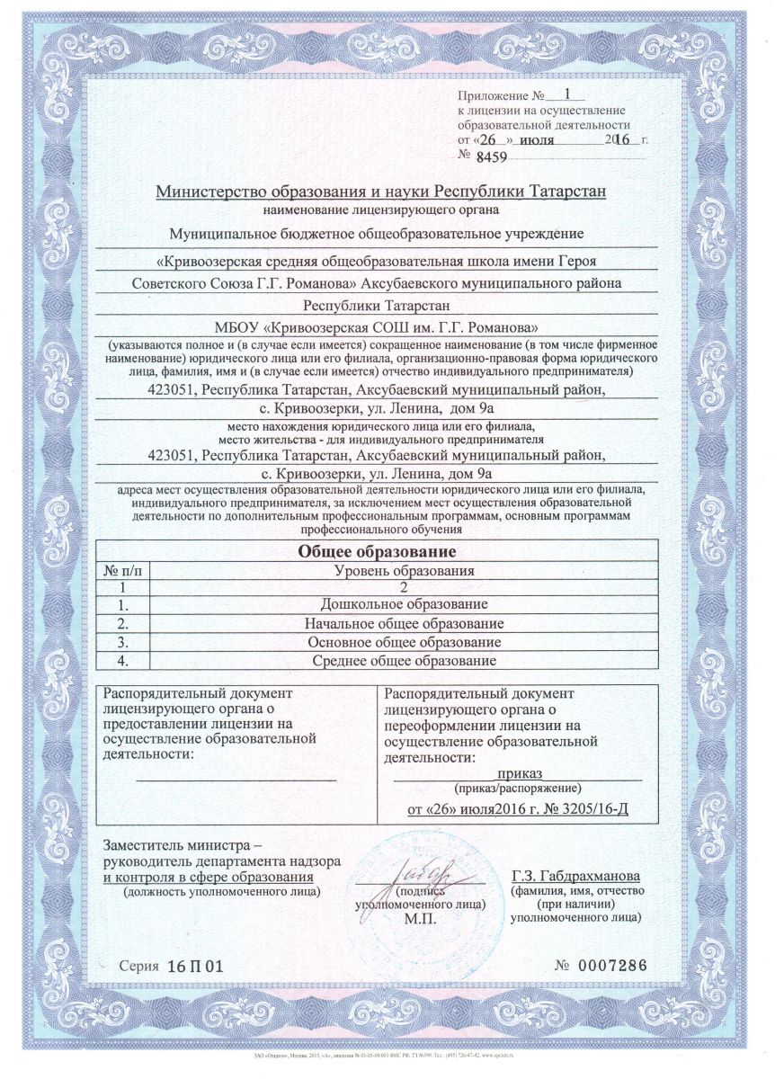 | Короткое название: | МБОУ "Кривоозерская СОШ им. Г.Г. Романова" Аксубаевского муниципального района РТ |
