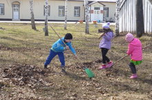 Дети старшей группы сегодня стали непосредственными участниками весеннего субботника по уборке территории.