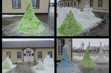 Не секрет, что работники дошкольных организаций - люди творческие. Вот и наши работники вместе с детьми возвели около любимого садика настоящие шедевры. Здесь можно встретить и деда Мороза, и Снегурочку, и нарядные Ёлочки, и медведя с бочонком мёда, и Снеговика.
