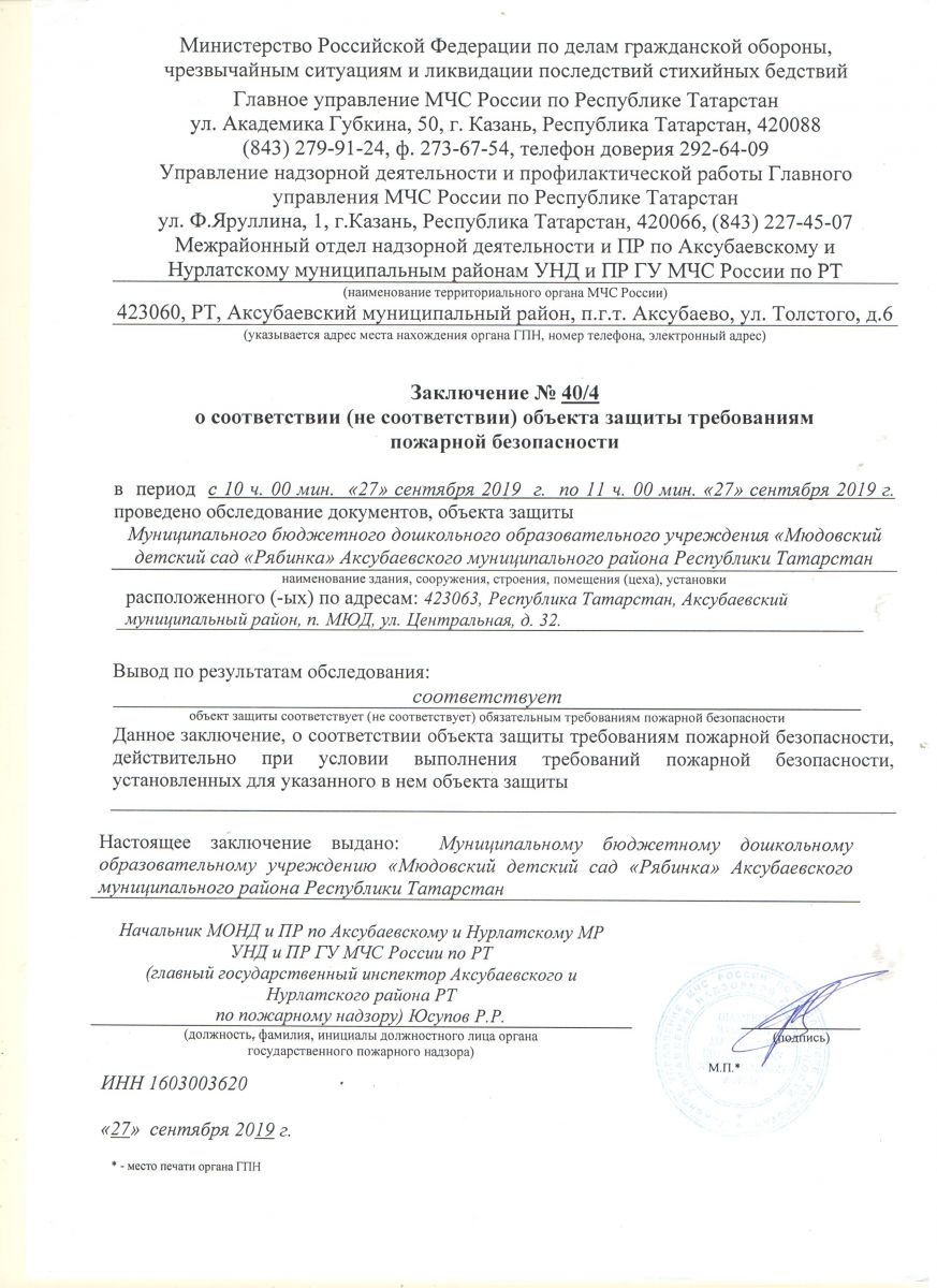 Заключение ПБ № 40/4 от 27.09.2019 года