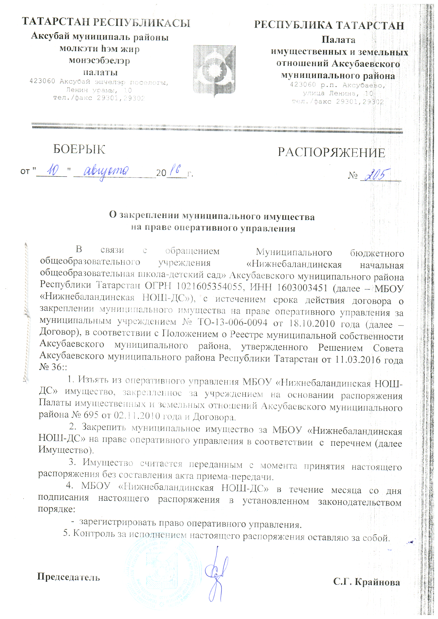 Распоряжение о закрепление муниципального имущества на праве оперативного управления