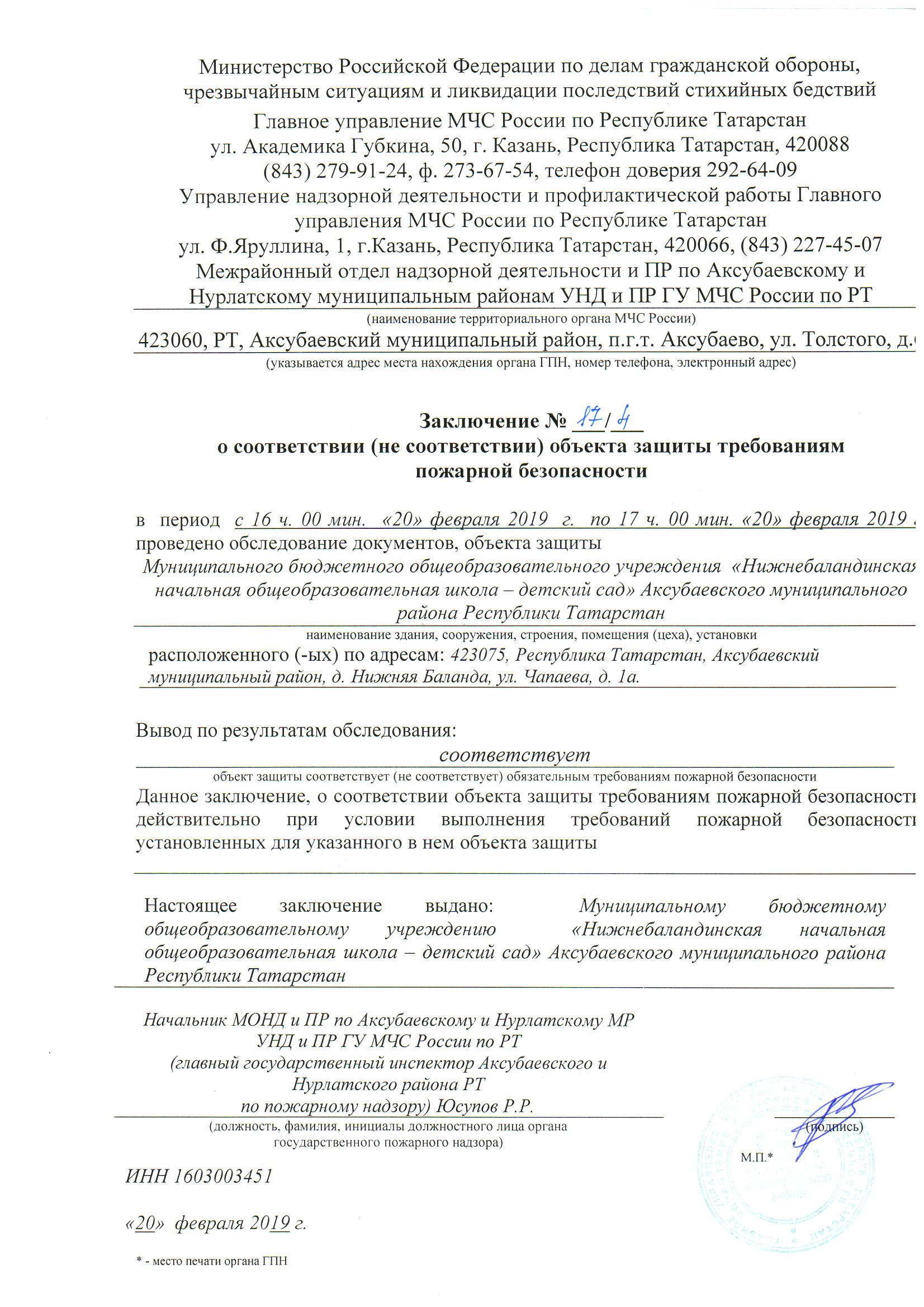 | Адрес: | 423075 Республика Татарстан, Аксубаевский район,д.Нижняя Баланда,ул.Чапаева д.1а |