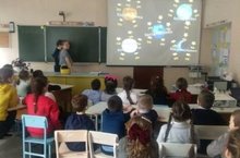 Сегодня в школе царила праздничная атмосфера. В честь дня космонавтики на переменах звучал гимн космонавтов "Трава у дома". Оформленная ко Дню космонавтики в фойе школы экспозиция была богата интересным тематическим материалом. После уроков была организована общешкольная интерактивная викторина "Время первых", посвященная 60-летию полета первого человека в космос.