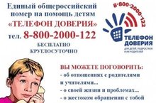Детский телефон доверия 8-800-2000-122 создан для оказания психологической помощи детям, подросткам и их родителям в трудных жизненных ситуациях. С 2010 года он принял уже более 10 млн звонков. Звонок бесплатный и анонимный. https://telefon-doveria.ru/