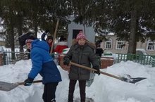 В рамках месячника военно-патриотического воспитания учащиеся 5-8 классов еженедельно очищают от снега территорию вокруг обелиска павшим в Великой отечественной войне.