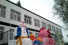 Всем хорошее настроение дарят снежные фигуры у крыльца нашей школы.