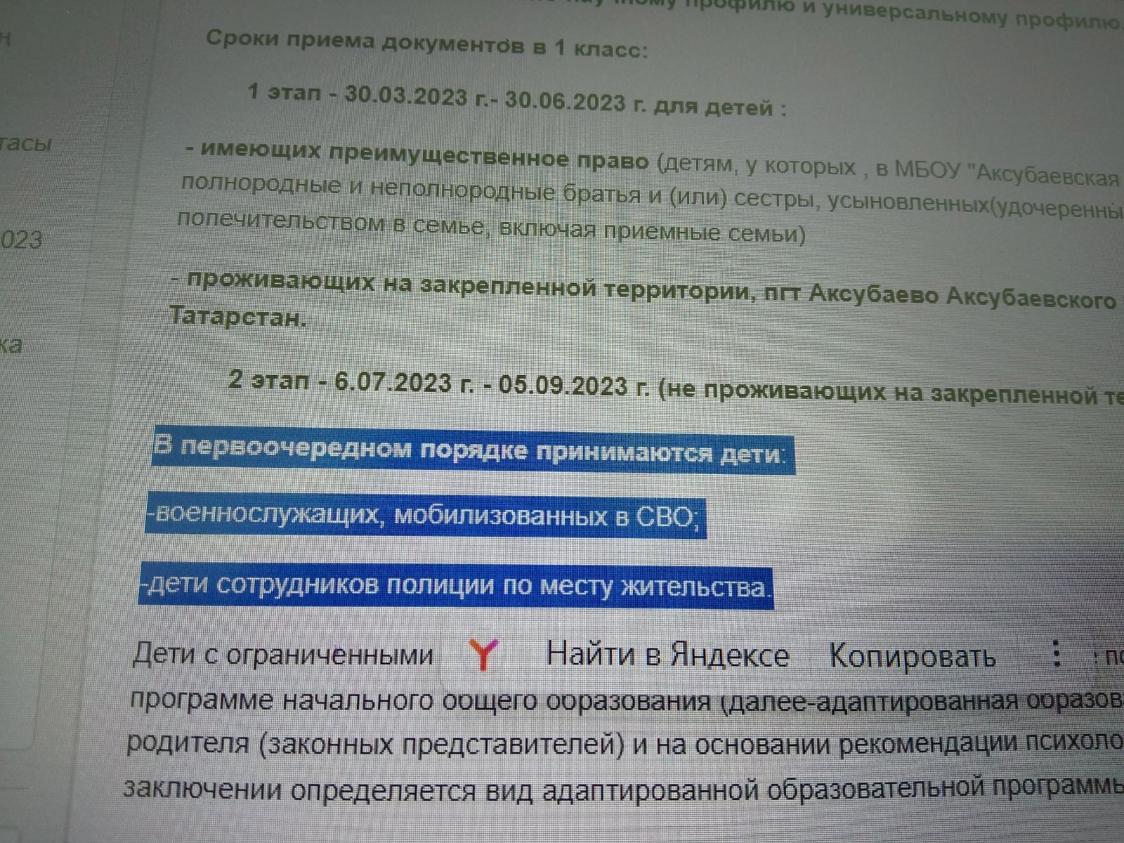 - документ, подтверждающий право внеочередного, первоочередного или преимущественного приема на обучение в государственные образовательные организации ( справку с места работы родителя(ей) (законного(ых) представителя( (ей)ребенка, справку уполномоченного органа, решение суда и т.д.);