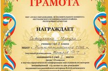 8 апрель көнне Яңа Дума авылында, тарих фәннәре буенча уздырылган, фәнни-гамәли конференциядә 8 сыйныф укучысы Сафиуллин Илсур 1 урынга лаек булды.