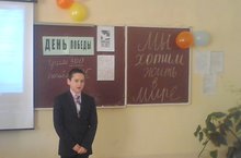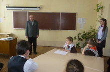 Урок Мужества 20.02.2015 Сегодня прошел Урок Мужества среди 4-6 классов с участием отрядных вожатых. На встречу с ребятами был приглашен бывший председатель колхоза им. Энгельса- Степанов Петр Сергеевич.