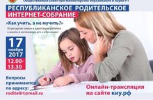 Уважаемые родители! 17.11.2017 года с 12.00ч до 13.30ч состоится Республиканское родительское интернет собрание. Он-лайн трансляция собрания будет вестись на сайте Казанского инновационного университета имени В.Г. Тимирясова по адресу: https://ieml.ru/.В процессе трансляции слушатели смогут получить ответы на заранее присланные вопросы и квалифицированные советы специалистов. Вопросы принимаются по адресу электронной почты: roditelirt@mail.ru.