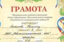 Поздравляем участников конкурсов. 04.04.2017 Прошла череда муниципальных этапов конкурсов. Ребята нашей школы также принимали участие и заняли призовые места. Ямукова Регина(6кл) и Симухина Василина(8кл) заняли 1 место в конкурсе "Страна детского творчества"; группа учащихся 6 класса Ильмурзин Д, Соломонов Н, Петров Д и Павлова А, Павлова Л, Ямукова Р заняли призовые места в конкурсе-акции "Экологический марафон"