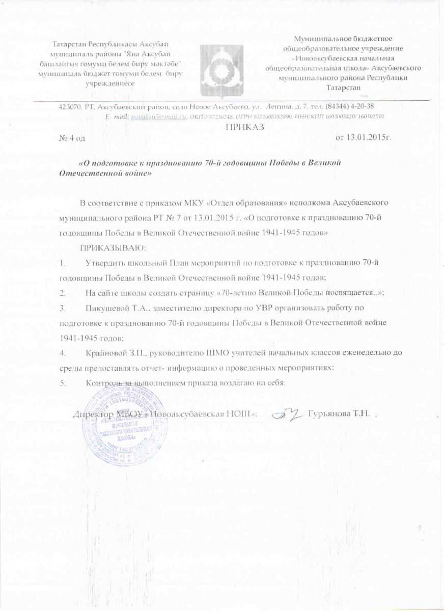 Приказ по МБОУ "Новоаксубаевская НОШ"
