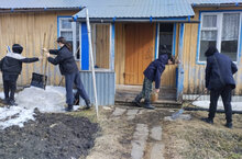 Воспитанники социального приюта «Мечта» с воспитателем Мардеевой Эндже посетили и помогли семье пенсионеров Тимочкиных.