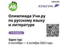 С 6 сентября по 3 октября 2022 года в рамках информационного сопровождения национального проекта «Культура» образовательная онлайн-платформа Учи.ру совместно с Министерством просвещения Российской Федерации реализует некоммерческую просветительскую инициативу – Всероссийскую онлайн-олимпиаду Учи.ру по русскому языку и литературе для учеников 1-9 классов.