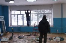 Мәктәптә капиталь ремонт эшләре башланып китте. Ашханәдә тәрәзәләрне алмаштыру эшләре бара.