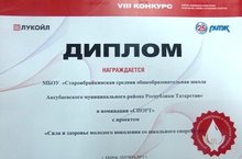 Мы стали призером-грантополучателем конкурса социальных и культурных проектов ОАО "Лукойл - в Республики Татарстан" в номинации "СПОРТ" с проектом "Сила и здоровье молодого поколения со школьного спортзала".