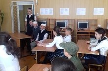 Бүген 7 сыйныфта тыл һәм хезмәт ветераннары белән берлектә "хәрби тарих"ка багышланган сыйныф сәгате үтте. Укчылар бит эчтәлекле видеоязма карадылар һәм сугыш чорында багышланган җырларны икә алып җырлап үттеләр.