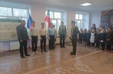 Хәрби әзерлек җыеннарында яхшы күрсәткечләре өчен 11 сыйныф укучыларына ветеран - сугышчыларның күчмә кубогын совет җитәкчесе Павел Крюков тапшырды.