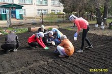 30 апрель көнне мәктәп бакчасында - яшелчәләр, тәҗрибә участогында культуралы үсемлекләр утыртылды.