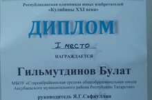 Республика уйлап табучылар "Кулибина XXI" олимпиадасында Гильмутдинов Булат 1 урын алды.