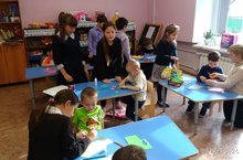 Преемственность дошкольного и начального образования. В рамках темы «За собою поведём, делом нужным увлечём», учащиеся 4 класса вместе с воспитанниками детского сада сделали аппликацию «Разделочная доска»