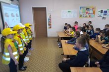 ЮИДовцы, с целью предупреждения рисков оказаться под колёсами автомобиля, ученикам младших классов рассказали о возможных падениях в условиях гололёда и увеличениях тормозного пути автотранспорта.