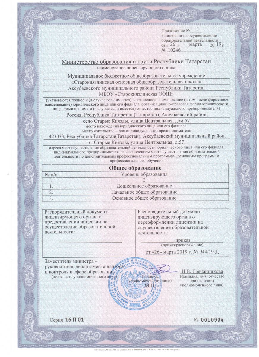 Лицензия на осуществление образовательной деятельности (сприложением)