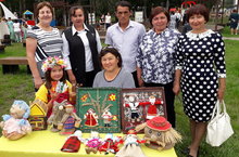 Руководитель кружка "Рукодельница" Симакаева И.И. совместно с ученицей 6 а класса Наумовой Д.- участники мастер - класса "Пальчиковые куклы".