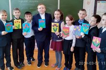 Юноши 7 а класса тепло и сердечно поздравили девушек с весенним праздником 8 марта!