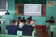 Урок физики в 7 классе проводит Гаврилов Н.И. В рамках урока Николай Иванович продемонстрировал фильм, посвященный первому космонавту Ю.А. Гагарину.