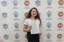 Поздравляем Сулейманову Айназ, ученицу 9 класса - призера Республиканской олимпиады школьников по татарской литературе!