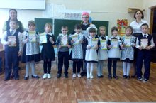 Активисты РДШ Шарафутдинова Диля и Шавалеева Залина с учащимися 1 класса провели "Посвящение в первоклассники" и подарили им Дипломы "За стремление к знаниям".