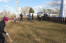 Учащиеся школы под руководством заместителя директора по воспитательной работе Бикуловой Татьяны Анатольевны провели трудовой десант по очистке территории у обелиска посёлка МЮД