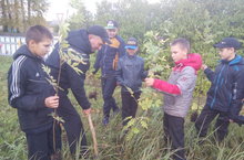 Учащиеся 6 а класса под руководством учителя технологии Бикулова Марса Паймурзовича посадили саженцы рябины.