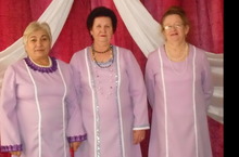 На сцене Мюдовского СДК -ветераны педагогического труда : Макаренкова Г.Л., Кондрашова З.Г., Гатина М.М.
