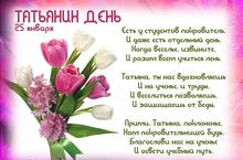 Поздравляем с праздником : Татьяну Анатольевну, Татьяну Николаевну, Татьяну Михайловну, Татьяну Александровну, Симакаеву Татьяну –ученицу 10 класса.