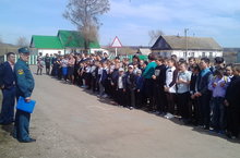 Учащиеся школы - участники трудового десанта по посадке саженцев.