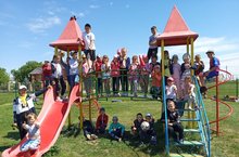 Сегодня в пришкольном лагере - экскурсия на детскую площадку,где ребята участвовали в играх,конкурсах...