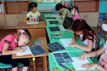 Ребята пришкольного лагеря - участники конкурса рисунков "Мы против коррупции!"