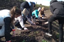 Учащиеся школы - участники трудового десанта по посадке саженцев.
