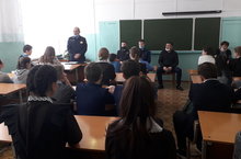 В школе состоялась встреча учащихся 7 - 11 классов с помощником прокурора Гусамовым И.Ф., инспектором по профилактике семейного неблагополучия и правонарушений среди несовершеннолетних Абдулиным Ф.М., инспектором по делам несовершеннолетних Егоровым Е.М..
