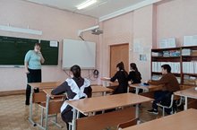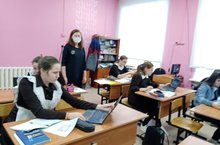 Учащиеся 9 класса принимают участие в пробном тренировочном тестировании по математике ( учитель: Михайлова В. М)