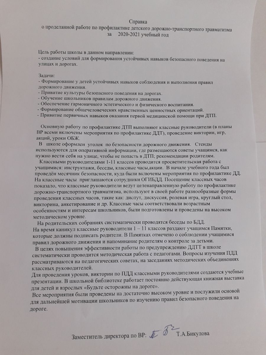 Справка о проделанной работе по БДД за 2020-2021 учебный год.
