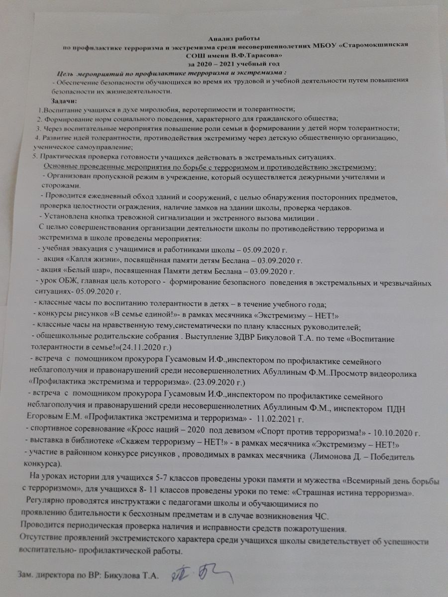 Анализ работы по профилактике терроризма и экстремизма за 2020 - 2021 учебный год.