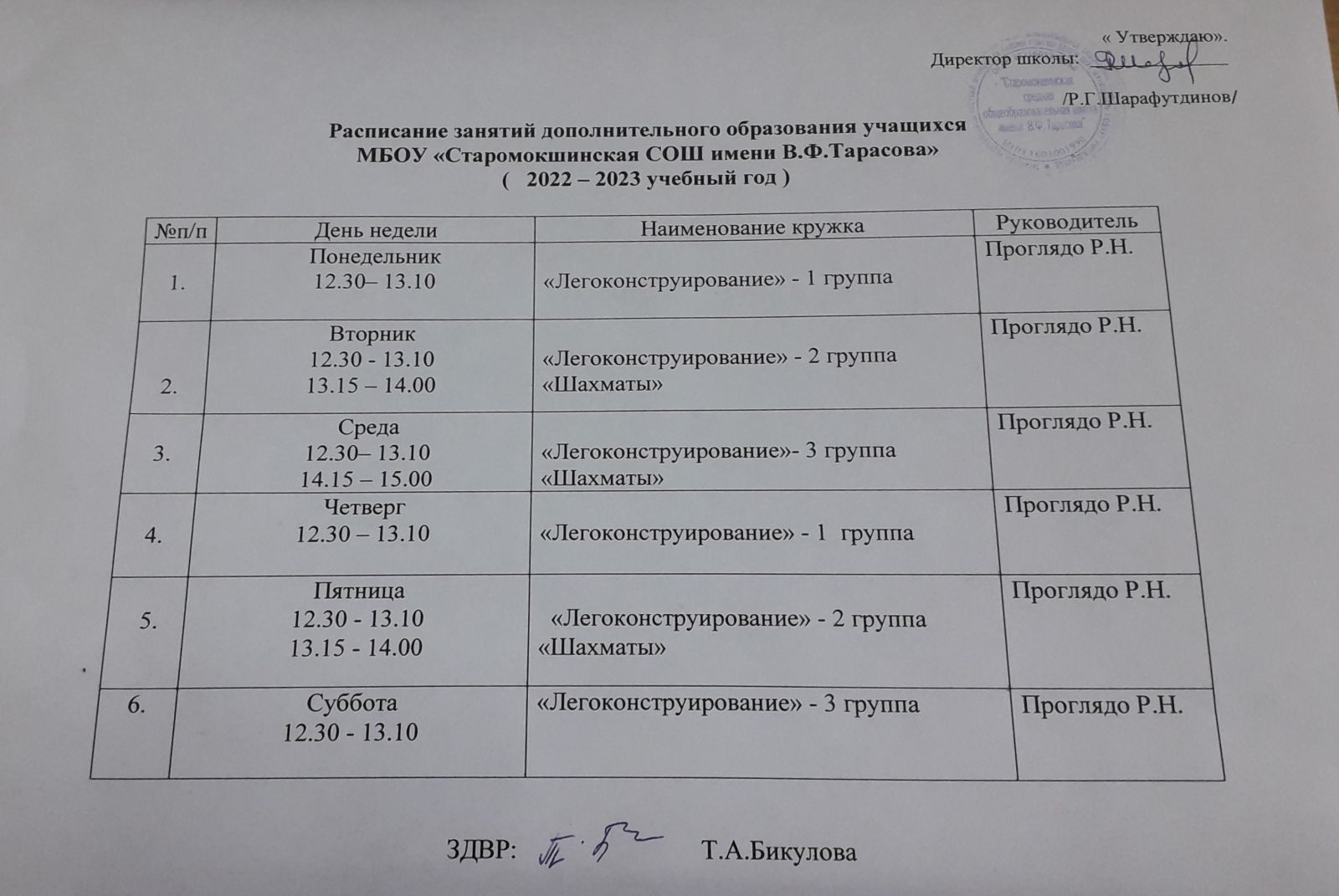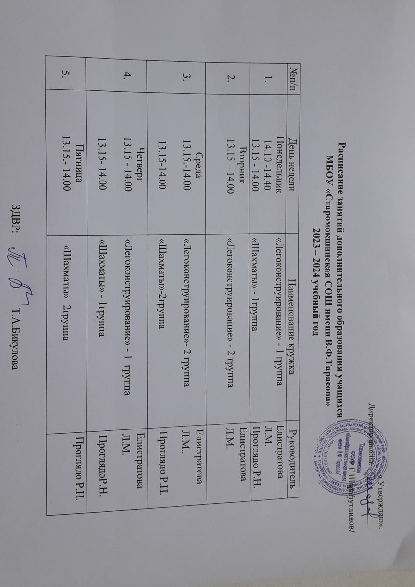 Расписание занятий дополнительного образования на 2023-2024 учебный год